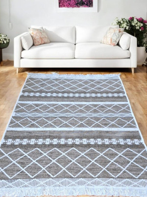 Dokuma Kilim Gri Beyaz 1. Kalite Pamuklu Dokuma Çift Taraflı Kilim Makinede Yıkanabilir