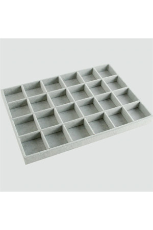 Süet Kumaş Gri Renk 34 Cm / 24 Cm 24 Bölmeli Çekmece Içi Takı Standı