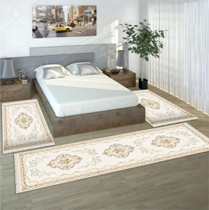 Krem Çicekli Dijital Baskılı 3 'Lü Yatak Odası Halısı Yolluk Takımı 80X150 2 Adet 80X300 1 Adet 14