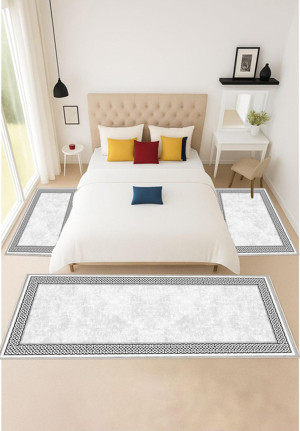Gri Dijital Baskılı 3 'Lü Yatak Odası Halısı Yolluk Takımı 80X150 2 Adet 80X300 1 Adet 30