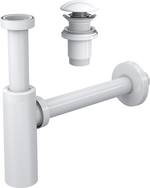 Moon Ayarlanabilir Lavabo Sifonu + Elixir Pop-Up Set (Mat Beyaz- Taşma Delikli)