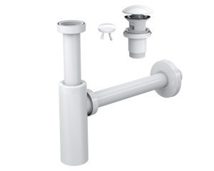 LUNA Yer Tasarruflu Lavabo Sifonu + Elixir Pop-Up Set (Parlak Beyaz - Taşma Delikli)