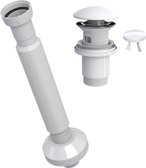 Magic Pipe Körüklü Gider Borusu + Elixir Pop-Up Set (Mat Beyaz - Taşma Delikli)