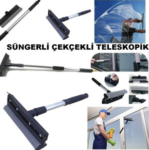 Lüx Cift Tarafli Teleskopik Cam Silme Paspası Ve Cekpasi Uzayıp Kısalan Sap Çekçekli Cam Silme