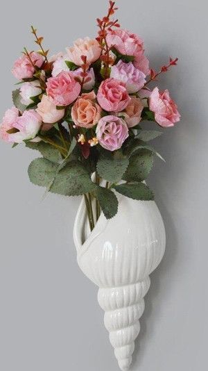 Beyaz Deniz Kabuğu Çiçek Vazosu Modern Duvar Dekoru Vazo - Image 1