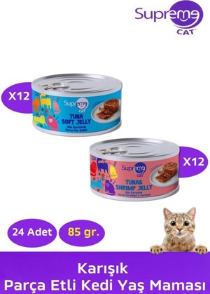 Supreme Cat Jöle İçerisinde Ton Balıklı ve Karidesli Yetişkin Kedi Konservesi 85 Gr