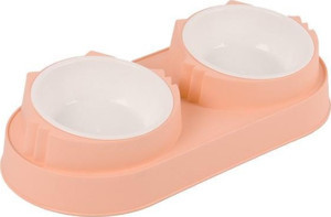 Yükseltilmiş Eğimli 2li Kedi Köpek Mama ve Su Kabı - Çiftli Mama Kabı Pembe