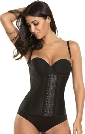 Kadın Siyahlatex Korse Askılı C?Elik Balenli S?Ekillendirici 3 Kademeli Agraflı Lateks Bel Korsesi