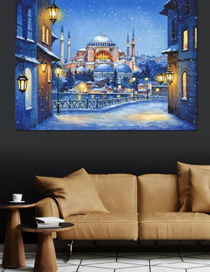 Tablomega Kış Gecesi Cami Manzarası Dekoratif Kanvas - Mdf Ahşap Tablo
