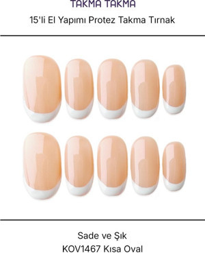 15'li Ten Rengi 15' Kısa Oval KOV1467FI Tekrar Kullanılabilir El Yapımı Protez Takma Tırnak Ten Rengi-L