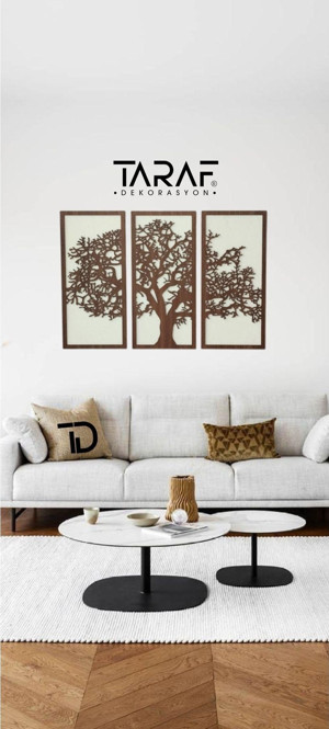 3 Parça Ağaç Tablo Lazer Kesim Dekoratif Tablo 42X62 Krem Ceviz 42 x 62 cm