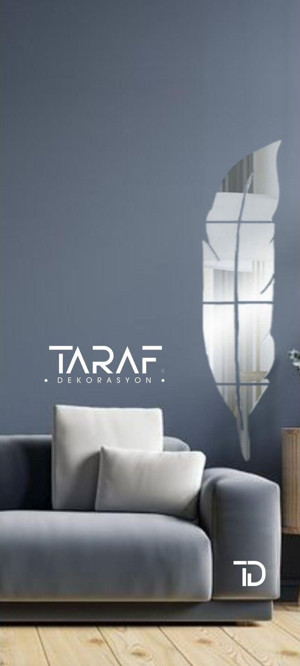 Tüy Figürlü Dekoratif Silver-Gümüş Pleksi Ayna 20 x 80 cm