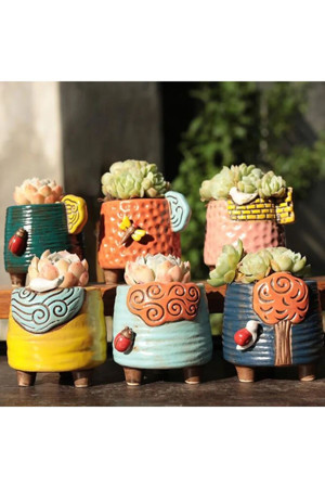 Yeni Kore Tarzı 6'Lı Retro Sukulent Ve Kaktüs Saksı Seti