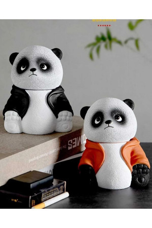 2 Li Takım Dekoratif Kapaklı Sevimli Panda Küllük, Kültablası