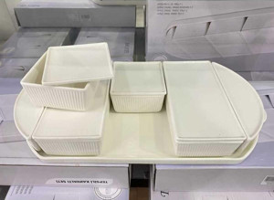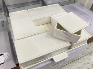 Porselen Kare Tepsili 6 Bölmeli Kapaklı Kahvaltılık Sunum Seti