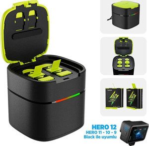 GoPro İkili Şarj Cihazı +2 ADET Yedek Batarya Fast Charging (GoPro Hero12 , Hero11 ,Hero10,Hero9 Black)