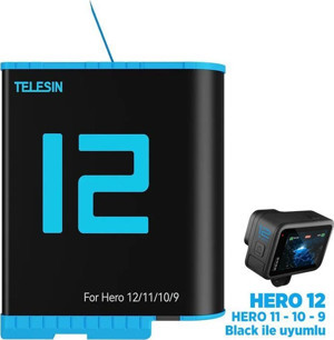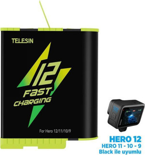 GoPro Şarj Edilebilir Yedek Batarya Fast Charging 1750mAh (Hero12 , Hero11 ,Hero10,Hero9 Black)