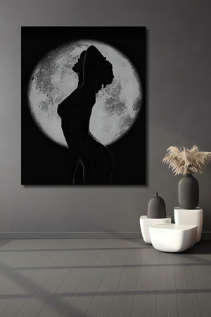 Ay Işığı Silüeti Dekoratif Ahşap Mdf Dikdörtgen Ev,İşyeri Duvar Tablo