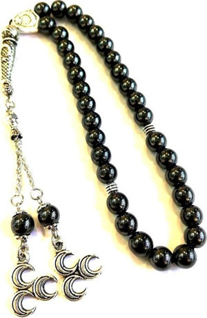 Tesbih Sakarya Tesbihsakarya Hematit - Doğaltaş Tesbih - 8Mm Küre Kesim - Üç Hilal Sallantılı