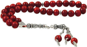 Tesbih Sakarya Küre Kesim Kırmızı Renk Mercan Taşlı Tesbih
