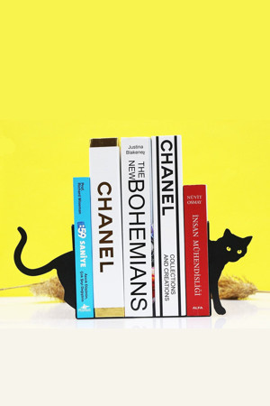 Kara Kedi Figürlü Dekoratif Metal Kitap Tutucu Kitap Desteği