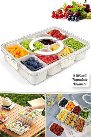 Tilbe Home 2'li 8 Bölmeli Kilit Kapaklı Taşınabilir Saklama Kabı Kahvaltılık Organizer Piknik Seti G