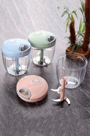 Tilbe Home Pratik Ipli El Rondosu 5 Çelik Bıçaklı Büyük Boy Sebze Meyve Et Soğan Doğrayıcı Blender Rende Mavi