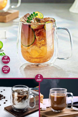 Tilbe Home 2Li Çift Cidarlı Bardak 250 Ml Ev Ofis Çay Fincanı Kahve Sunum Bardağı Dayanıklı Kupa Cam Bardak
