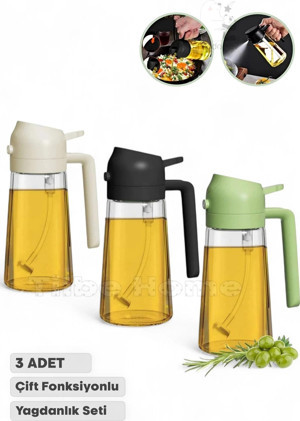 Tilbe Home 2 Adet Çift Fonksiyonlu Cam Yağdanlık 450ml Zeytinyağı Sıvıyağ Şişe Sprey Airfryer Yağlık Sirkelik