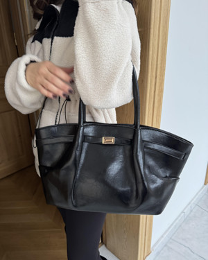 Kemer Detaylı Büyük Rugan Çanta Siyah