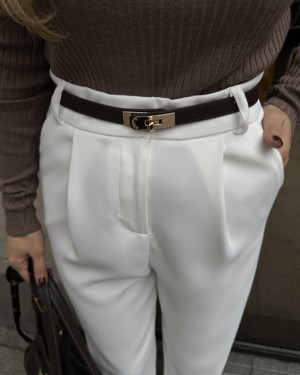 Gold Kilit Tokalı Dikişli Kemer 2cm Beyaz
