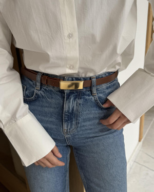 Gold Kilit Tokalı Dikişli Kemer 2cm Acı Kahve