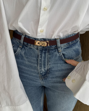 Gold Kilit Tokalı Dikişli Kemer 2cm Bordo
