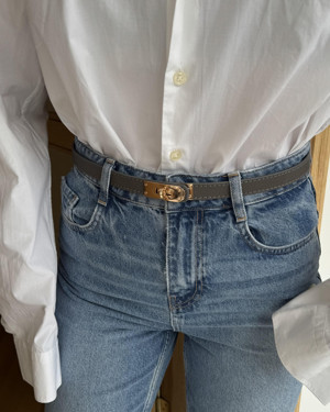 Gold Kilit Tokalı Dikişli Kemer 2cm Gri