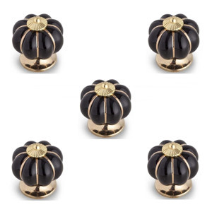 5 Adet Tomurcuk Porselen Düğme Siyah - Altın Tek Mobilya Kulp