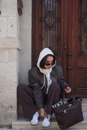 Kemer Detaylı Çift Bölmeli Vegan Deri Omuz & Kol Çantası