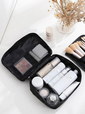 Fuşya - 4 Bölmeli Makyaj Çantası | Bakım Seyahat Makyaj Kozmetik Organizer Çanta