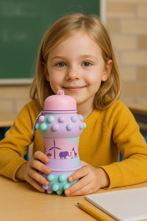 Slikon Matara 550Ml Sızdırmaz Katlanabilir Okul Ofis Kamp Seyahat Suluk Matara