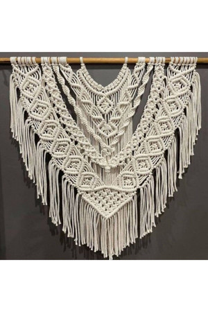Boho Aynası Yumuşak Makrome Ayna Beyaz Duvar Dekoru 3'Lü Set