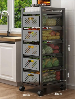 5 Katlı Metal Siyah Çekmeceli Sebze Meyve Sepeti Mutfak Organizer Düzenleyici