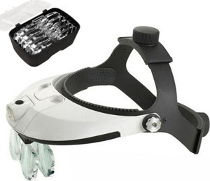 Şapka Tipi Led Işıklı Büyüteç Gözlük 9X Zoom 5 Lens Kafa Lambası