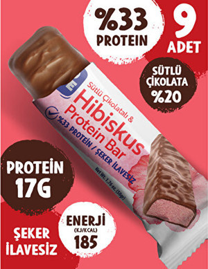 Hibiskus Ve Sütlü Çikolatalı, %33 Protein, 50 G X 9 Adet Protein Bar 40007-HIBISKUS Renkli