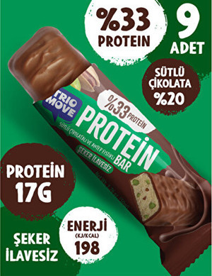 Yer Fıstıklı Ve Sütlü Çikolatalı, %33 Protein, 50 G X 9 Adet Protein Bar