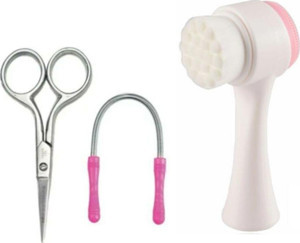 Çift Taraflı Yüz Temizleme Fırçası Tüy Alma Yayı Ve Çelik Kaş Makası