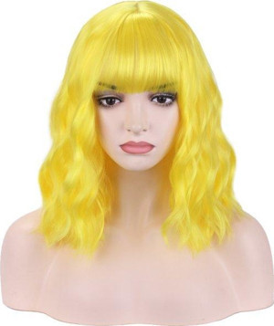 Parti Aksesuar Sarı Renk Uzun Dalgalı Parti Peruğu