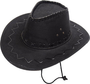 Bağcıklı Çocuk Boy Nubuk Süet Kovboy Şapkası Siyah Renk