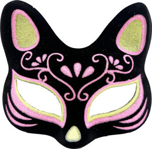 Siyah Renk Fuşya Simli Süet Kaplama Kedi Maskesi 18x14 cm