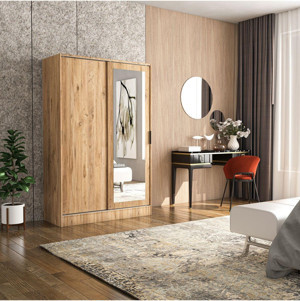 Berceste Atlantik Çam 2 Sürgü Kapaklı Aynalı 8 Bölmeli Dolap Gardırop 120x48 cm