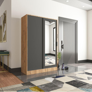 Berceste Antrasit Beyaz 2 Sürgü Kapaklı 8 Bölmeli Dolap Gardırop 120x48 cm