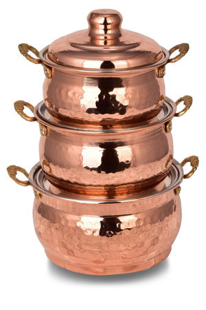 Bakır Mini Güveç Tencere 3'Lü Takım El Dövme(12 Cm-13 Cm-14 Cm)